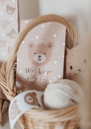 Opdruk: Welkom lieve baby (met hartjes en goudaccenten)