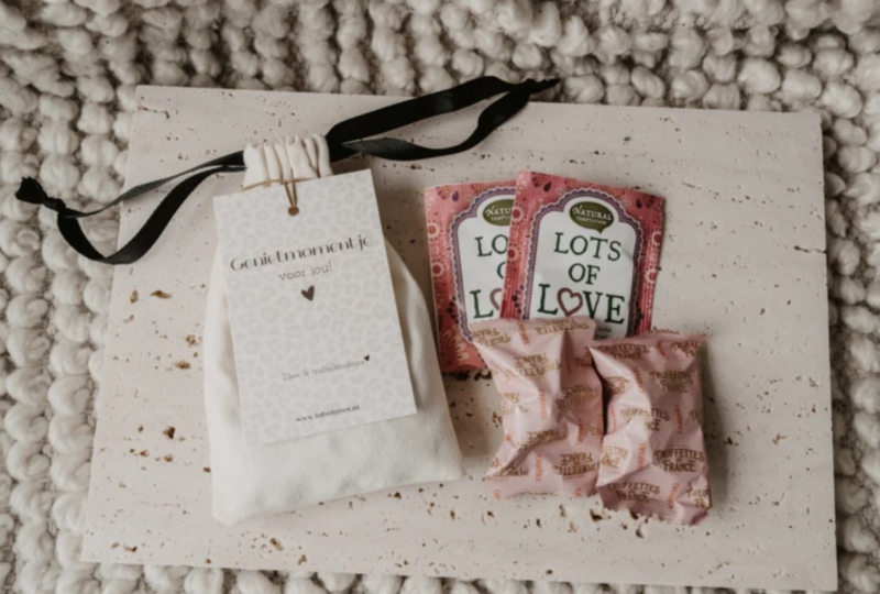 Je kraamverzorgster verdient een bedankje dat écht bij haar past. Iemand die elke dag vroeg opstond, voor jullie klaarstond en de eerste week zo bijzonder maakte. Dit stoffen zakje “Genietmomentje voor jou” van Label ZeeV is een warm en persoonlijk cadeau voor de leukste kraamverzorgster — gevuld met thee en heerlijke truffelbonbons. Klein, lief en kant-en-klaar.