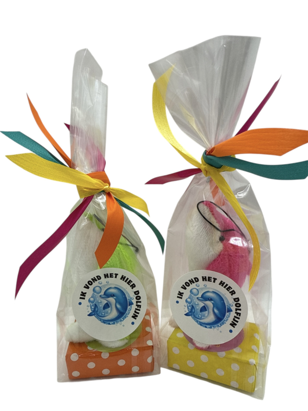 1 Zachte dolfijn knuffel: Geleverd in verschillende vrolijke kleuren.