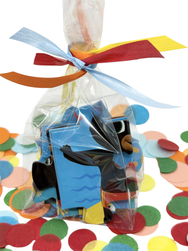 Alles wordt kant-en-klaar geleverd, feestelijk verpakt en klaar voor de groep. Voeg een sticker toe met naam en leeftijd voor een persoonlijk tintje. Binnen 2 dagen verzonden.